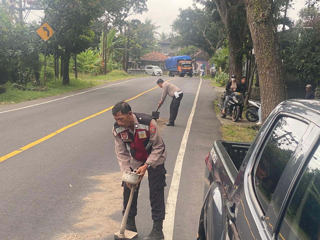 Berdasarkan informasi dari pengguna jalan, terdapat solar yang tumpah di sepanjang kurang lebih 50 meter ruas jalan tersebut. Untuk mengantisipasi potensi kecelakaan lalu lintas, Unit kecil lengkap (UKL) yang dipimpin Aiptu Wayan Wardana bersama dua personelnya segera mendatangi lokasi dan melakukan penimbunan pasir. Langkah cepat ini dinilai efektif meminimalisir risiko kendaraan tergelincir saat melintas.
