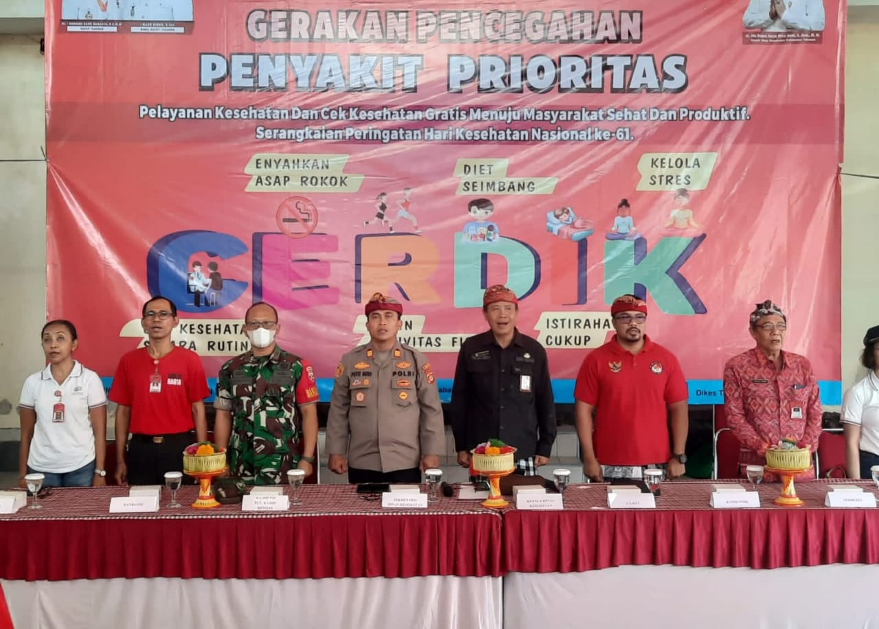 Kegiatan ini merupakan bagian dari upaya pencegahan penyakit prioritas di masyarakat yang dirangkaikan dengan peringatan Hari Kesehatan Nasional (HKN) ke-61 yang mengusung tema “Parahyangan Suci, Palemahan Resik, Pawongan Bagia” yang bermakna menjaga kesucian hubungan spiritual, kebersihan lingkungan, dan kebahagiaan sosial masyarakat.