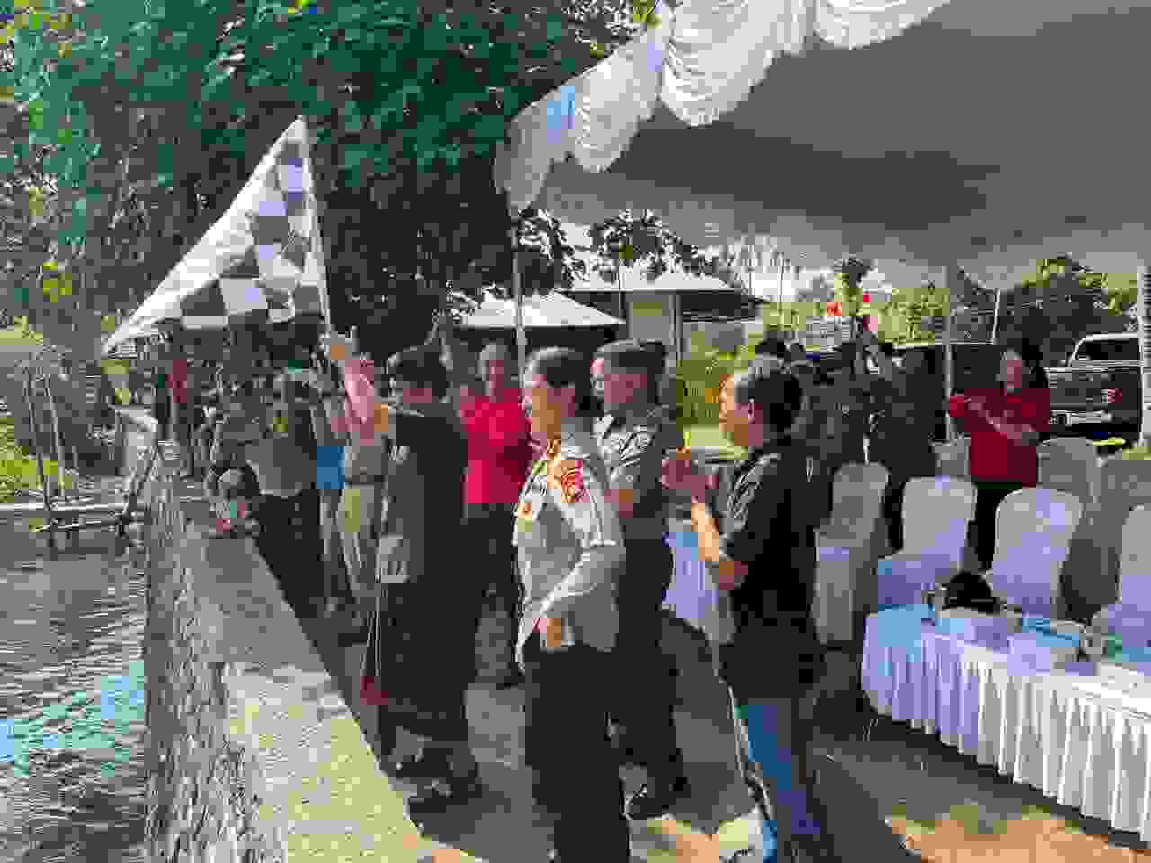 Kegiatan yang diikuti 35 sampan tradisional dengan rute sepanjang lima kilometer itu dihadiri sejumlah pejabat, termasuk Kapolres Jembrana AKBP Kadek Citra Dewi Suparwati, S.H., S.I.K., M.I.K., Dandim 1617/Jembrana Letkol Inf M. Adriansyah, serta Sekda Jembrana Drs. I Made Budiasa.