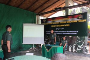 Tabanan tabloidtipikornews.com- Kodim 1619/Tabanan menggelar kegiatan Peningkatan Kemampuan Aparat Komando Kewilayahan (Apkowil) Tersebar Tahun 2025 dengan tema “Melalui Kegiatan Peningkatan Kemampuan Apkowil Tersebar Kita Tingkatkan Profesionalisme Guna Mewujudkan Kemanunggalan TNI Rakyat Untuk Mendukung Pembangunan Nasional”. Kegiatan ini dipimpin oleh Dandim 1619/Tabanan, Letkol Inf Trijuang Danarjati, S.A.P., M.I.P., dan bertempat di Garasi Makodim 1619/Tabanan, Kamis, (9/10/2025).