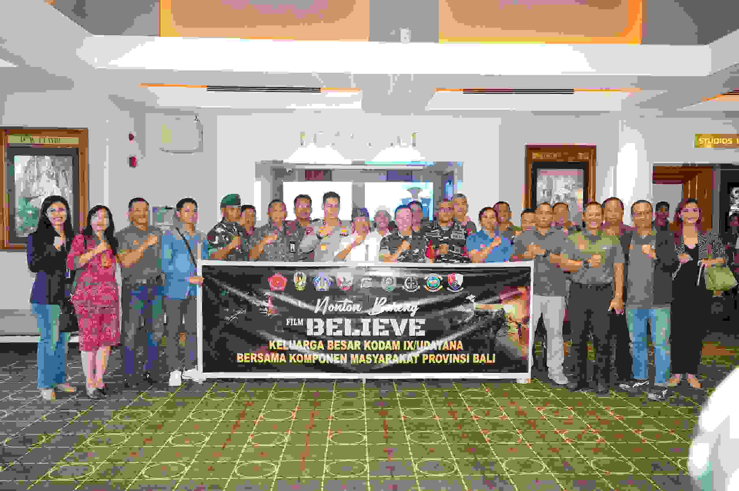Dalam suasana penuh kebersamaan dan nasionalisme, Pangdam IX/Udayana Mayjen TNI Piek Budyakto, S.H., M.H. bersama Forkopimda Bali dan jajaran Keluarga Besar TNI (KBT) menghadiri kegiatan nonton bareng (nobar) film nasional Believe yang digelar di Mall Bali Galeria, Bioskop Gelaria XXI,Pada Jumat 4 Juli 2025.