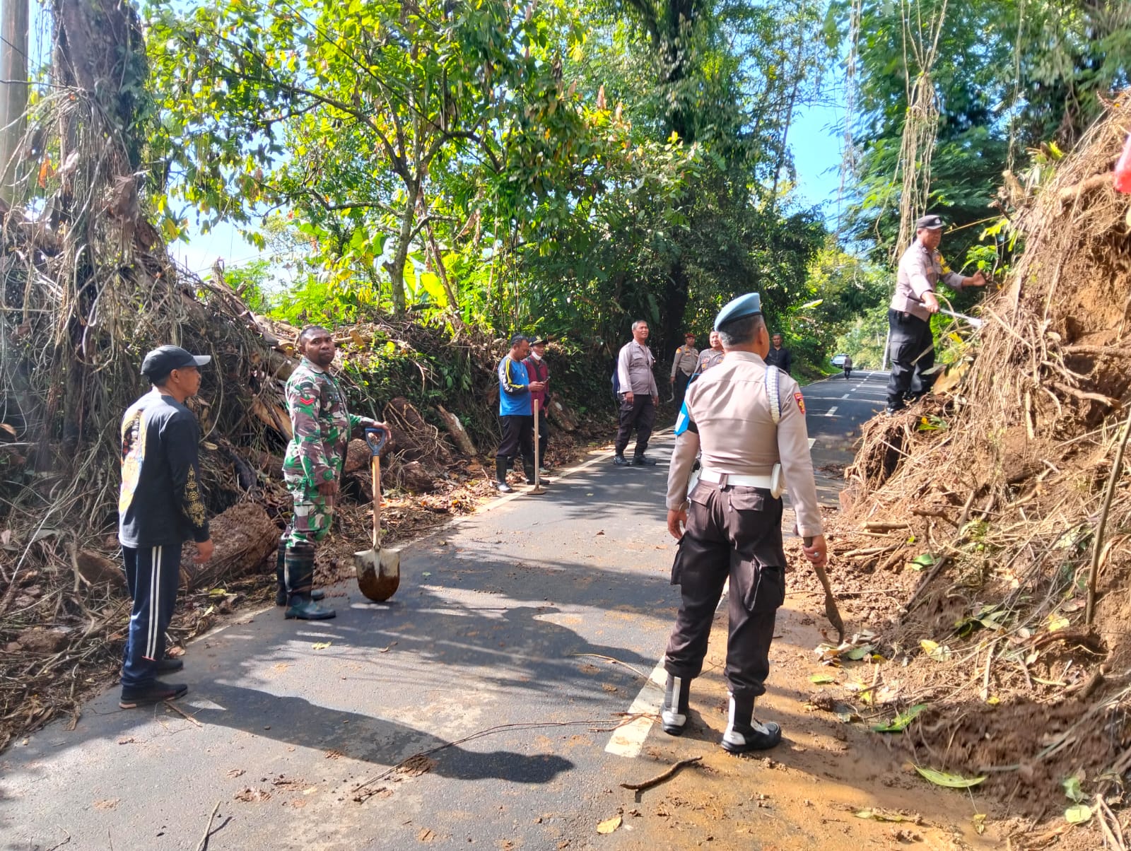 Melihat kondisi tersebut, Koramil Baturiti bersama Polsek Baturiti langsung berkoordinasi dengan perangkat desa dan masyarakat sekitar untuk melakukan pembersihan. Dengan menggunakan peralatan manual, mereka bahu-membahu membersihkan material longsor dan memotong pohon tumbang yang menutup sebagian badan jalan.