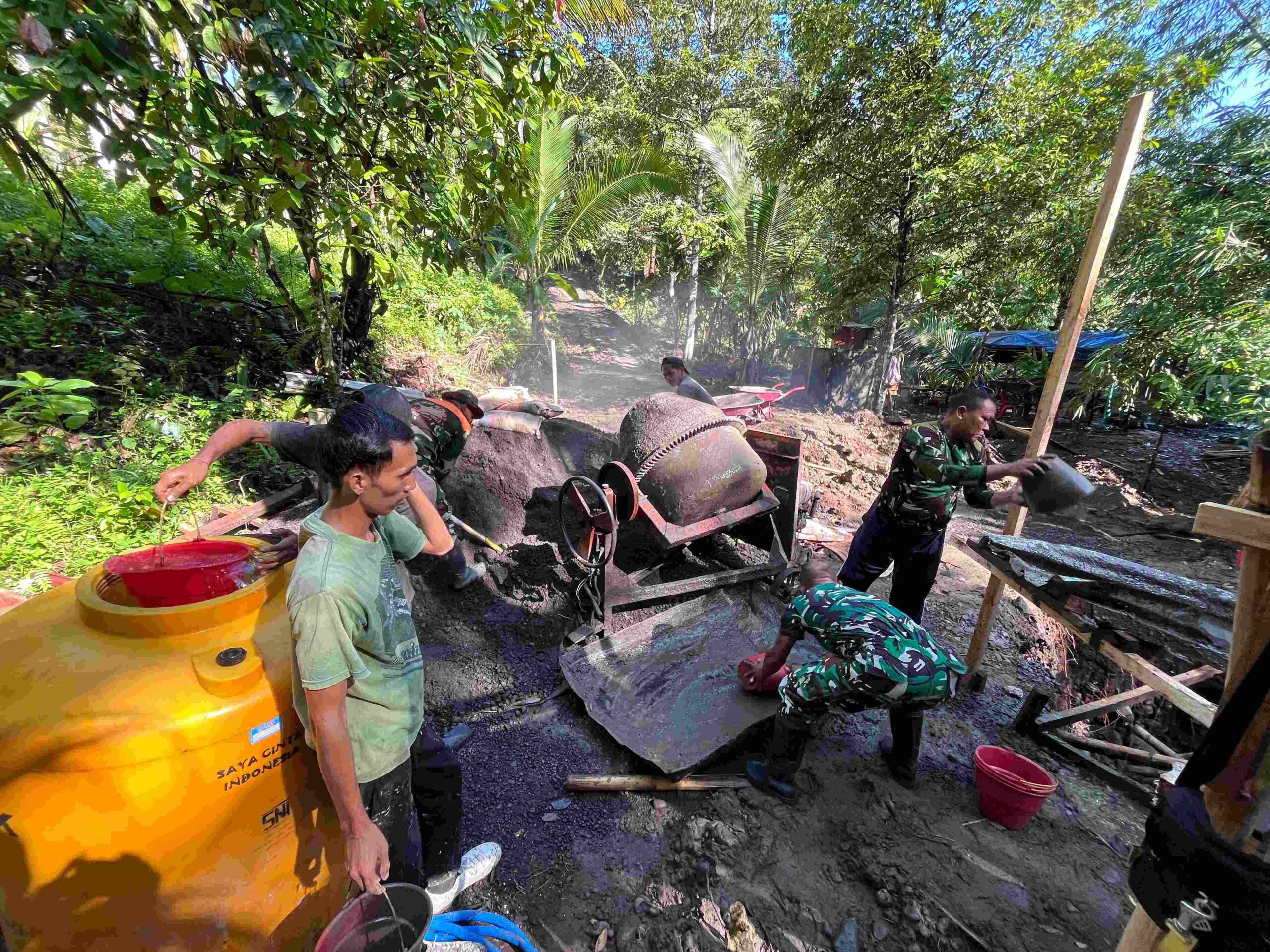 Yang menarik dalam proses pembangunan ini adalah kuatnya kolaborasi antara TNI dan masyarakat. Semangat gotong royong tampak nyata di lapangan, di mana prajurit TNI bersama warga bahu-membahu mengerjakan pembangunan demi percepatan penyelesaian proyek.