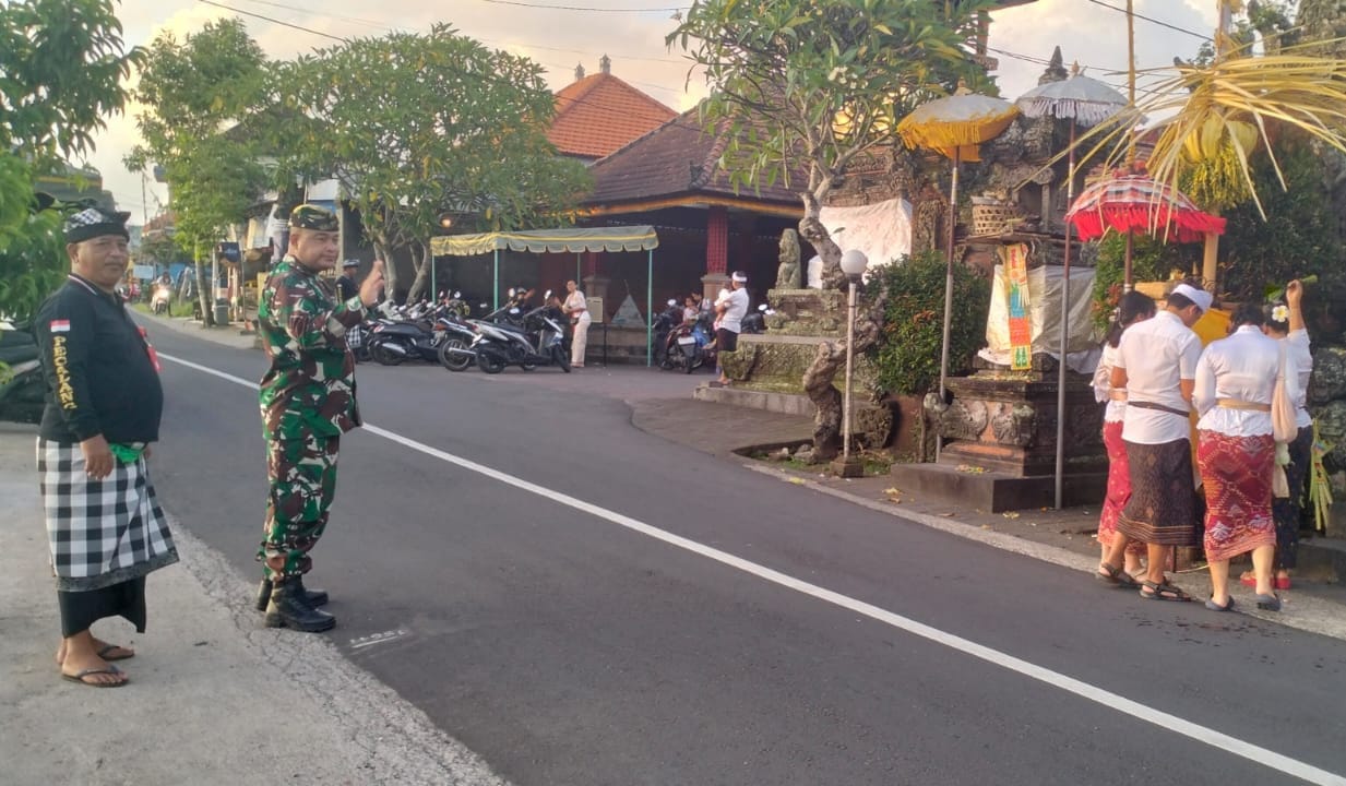 Selain melakukan pengamanan, Babinsa juga aktif memberikan imbauan kepada warga agar tetap menjaga ketertiban, keamanan, serta keselamatan selama rangkaian upacara berlangsung. Sinergi yang baik antara Babinsa, pecalang, dan masyarakat membuat seluruh rangkaian kegiatan piodalan berjalan dengan tertib dan penuh khidmat.