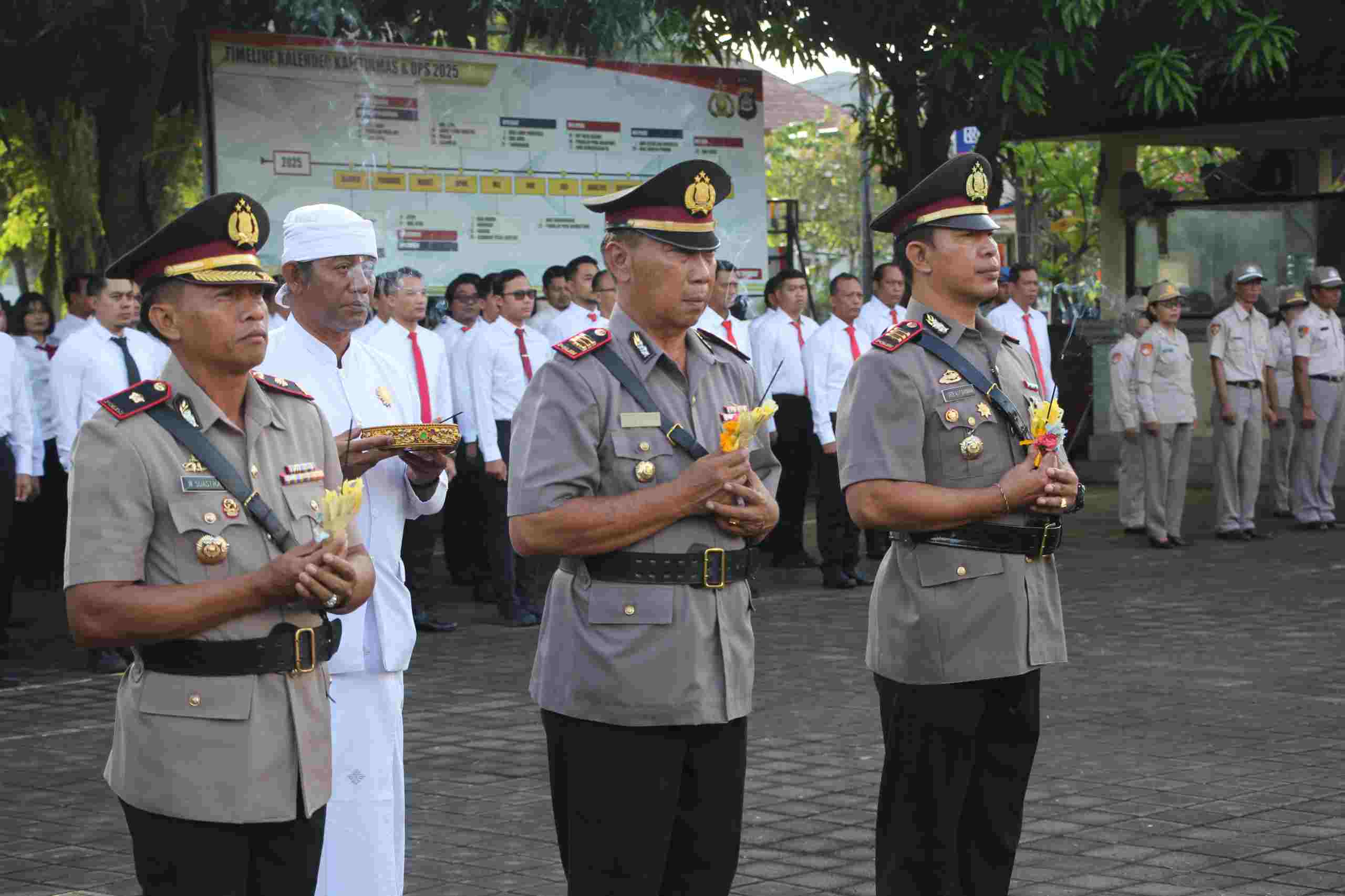 Upacara tersebut dipimpin langsung oleh Kapolres Jembrana AKBP Kadek Citra Dewi Suparwati, S.H., S.I.K., M.I.K. selaku Inspektur Upacara. Kabag SDM Polres Jembrana AKP I Putu Budi Santika, S.H. bertindak sebagai Perwira Upacara, sementara Komandan Upacara dijabat oleh Kanit 2 Satreskrim Polres Jembrana IPTU I Gusti Komang Astuna, S.H.