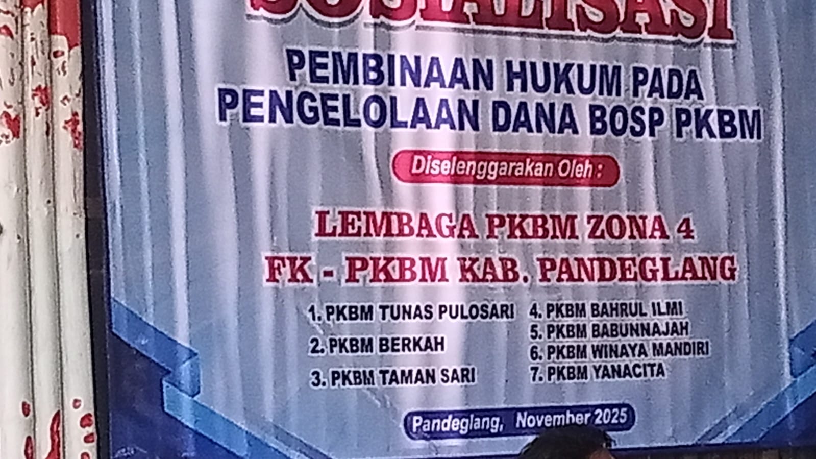 Pandeglang tabloidtipikotnews com– Guna meningkatkan pemahaman hukum dan tertib administrasi dalam pengelolaan keuangan pendidikan nonformal, Lembaga PKBM Zona 4 FK-PKBM Kabupaten Pandeglang menggelar Sosialisasi Pembinaan Hukum Pengelolaan Dana BOS PKBM.
