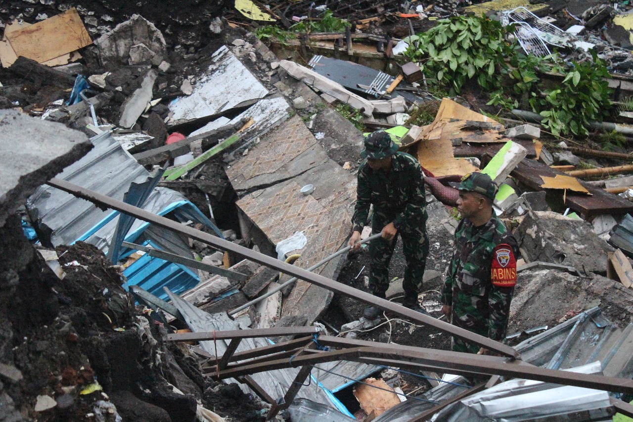 Puluhan personel TNI dari Kodim Tabanan bahu membahu membersihkan lumpur, batu, serta sampah yang menumpuk di badan jalan, perumahan dan saluran irigasi akibat luapan sungai setelah diguyur hujan deras beberapa hari terakhir. Aksi gotong royong ini dilakukan untuk memperlancar kembali akses warga serta mencegah terjadinya banjir susulan.