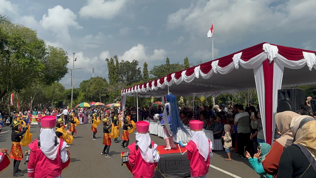 Wakapolres Jembrana KOMPOL I Ketut Darta, S.H., M.H., menghadiri kegiatan Parade Drum Band tingkat SD hingga SMA se-Kabupaten Jembrana yang digelar di depan Kantor Bupati Jembrana, Selasa (19/8). Parade tersebut diselenggarakan dalam rangka memperingati Hari Ulang Tahun (HUT) Kota Negara ke-130 sekaligus HUT ke-80 Kemerdekaan Republik Indonesia.